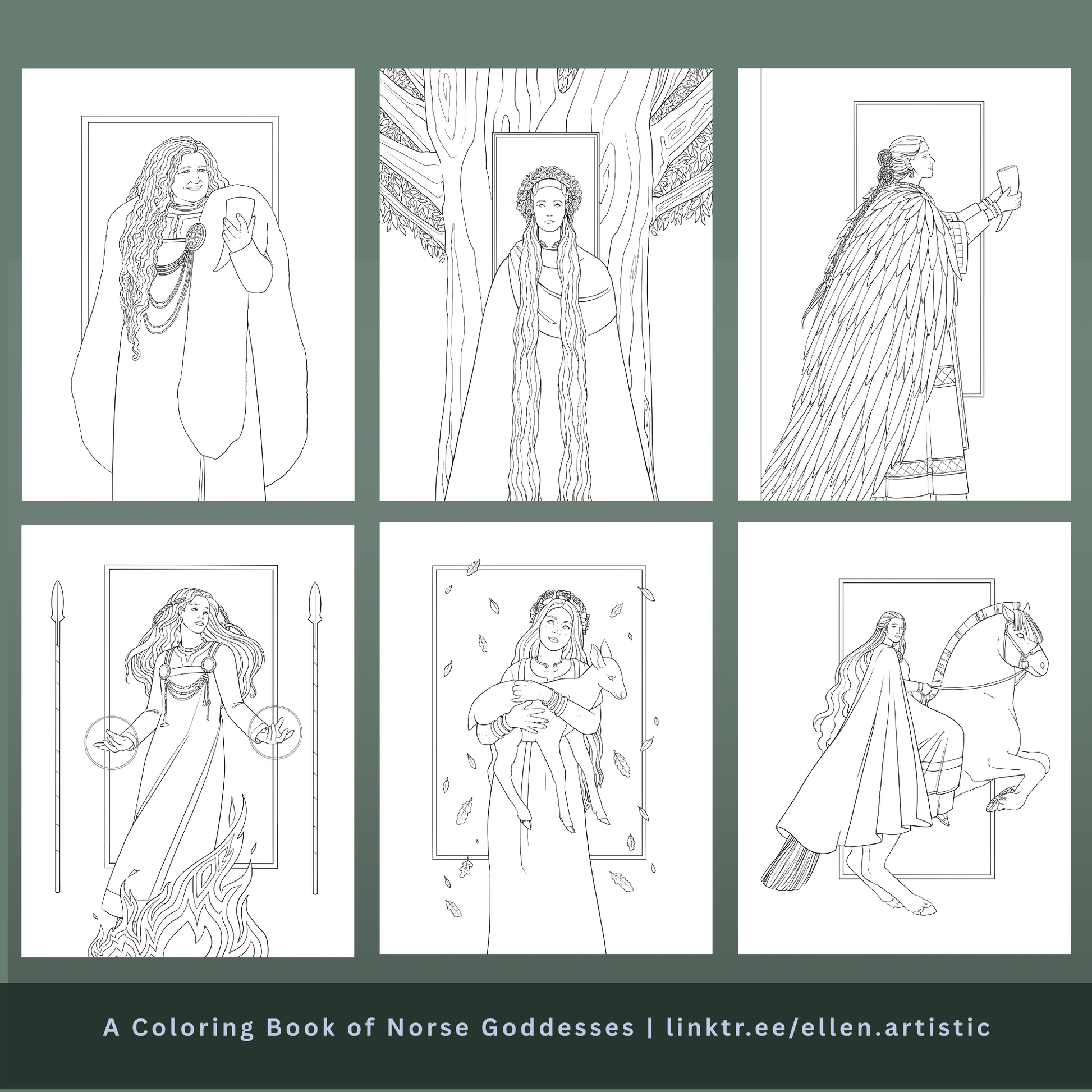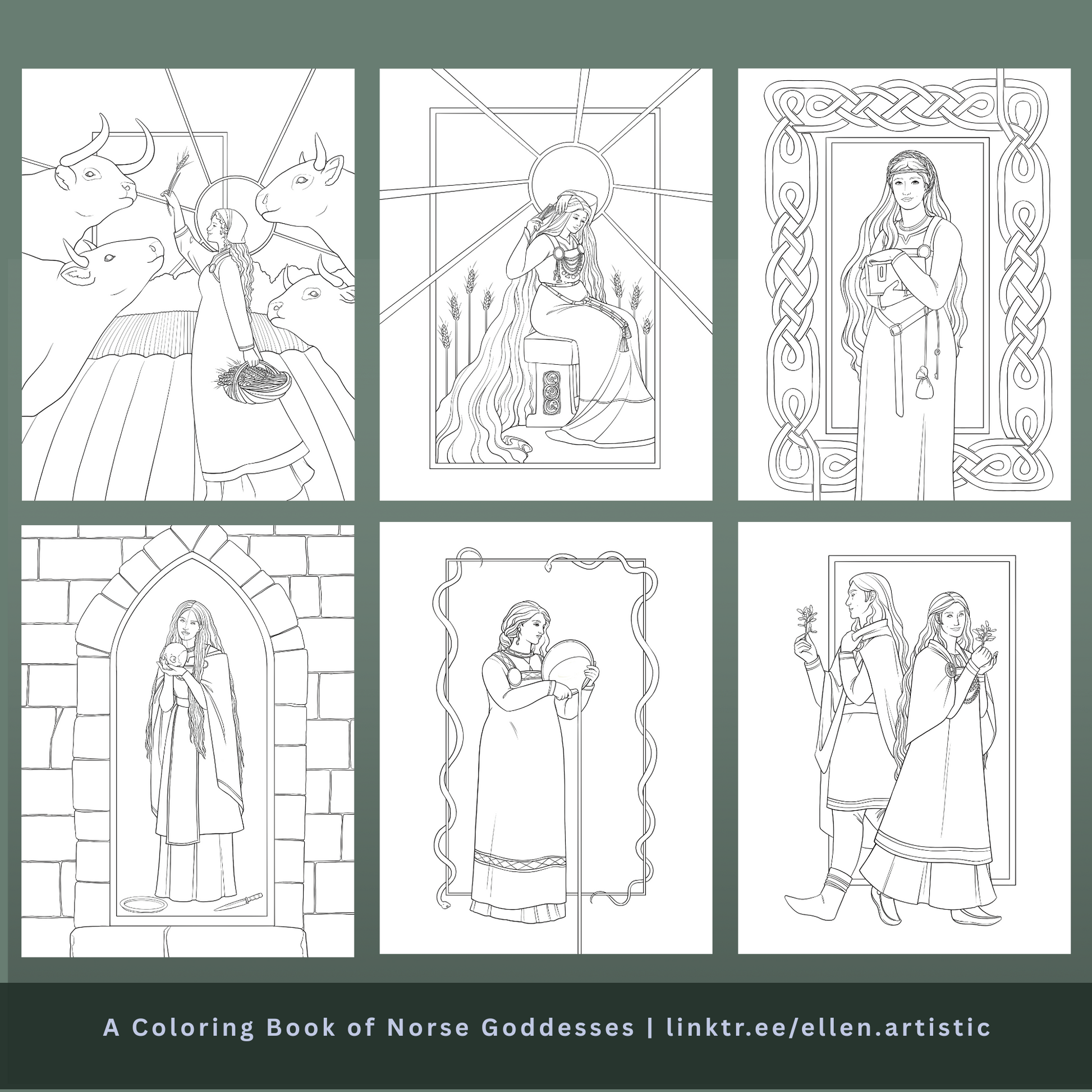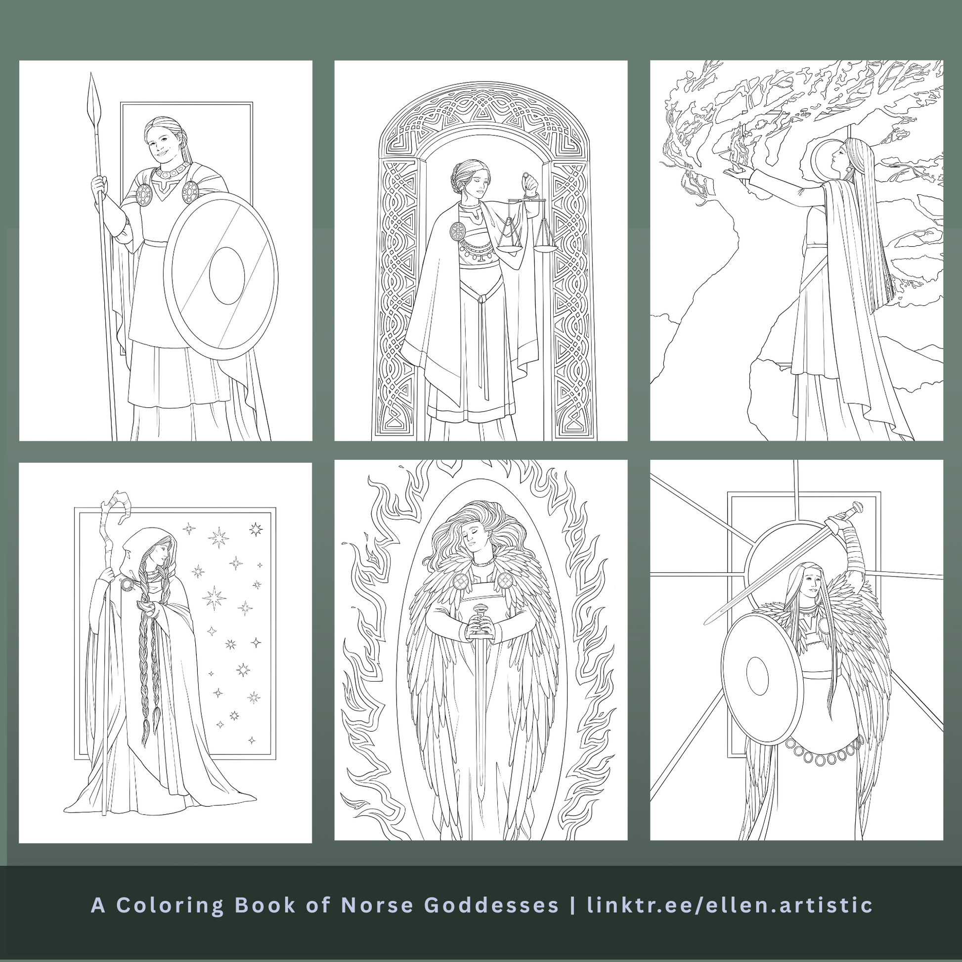 A Coloring Book of Norse Goddesses - 35+ Page PDF