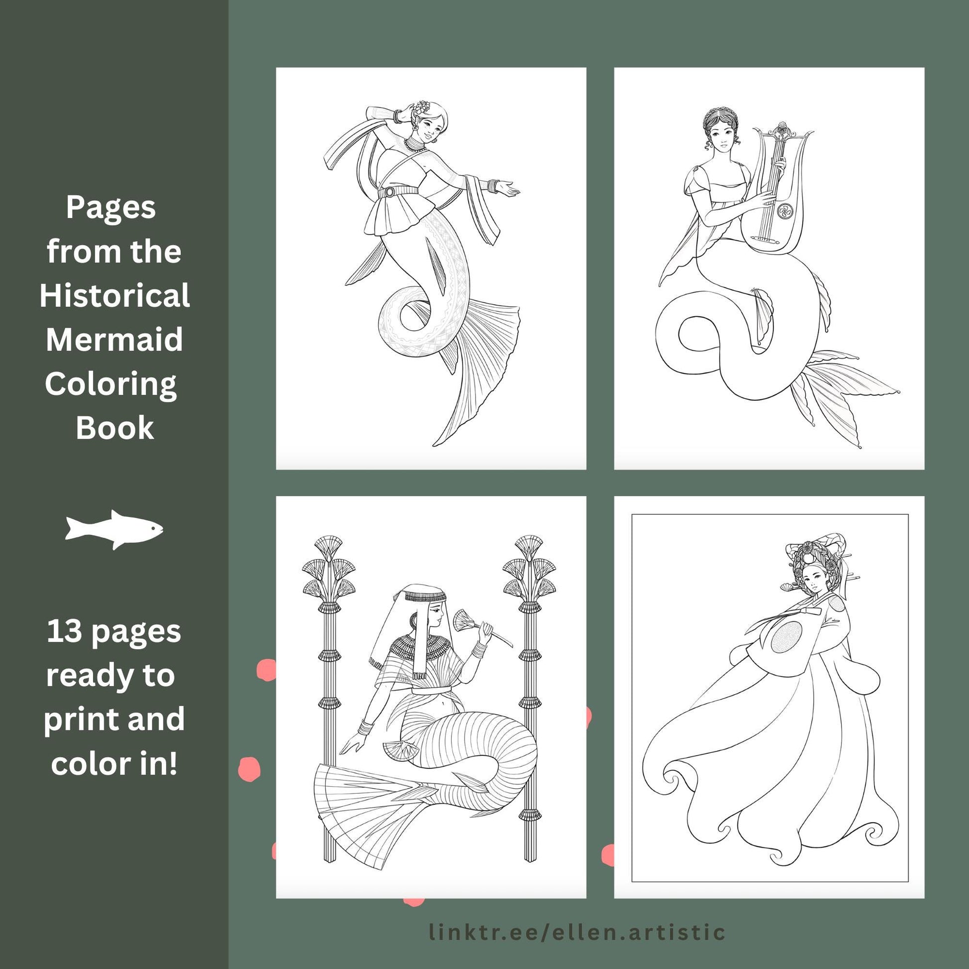 Historical Mermaids Coloring Bundle 1 - 13 Page PDF by Ellen Artistic