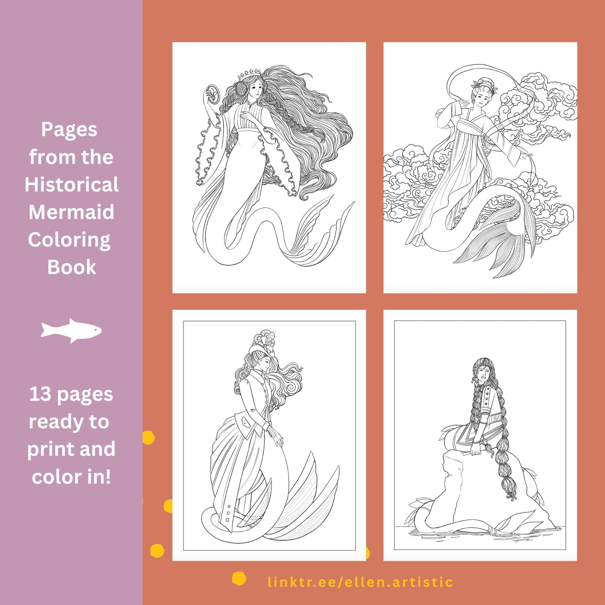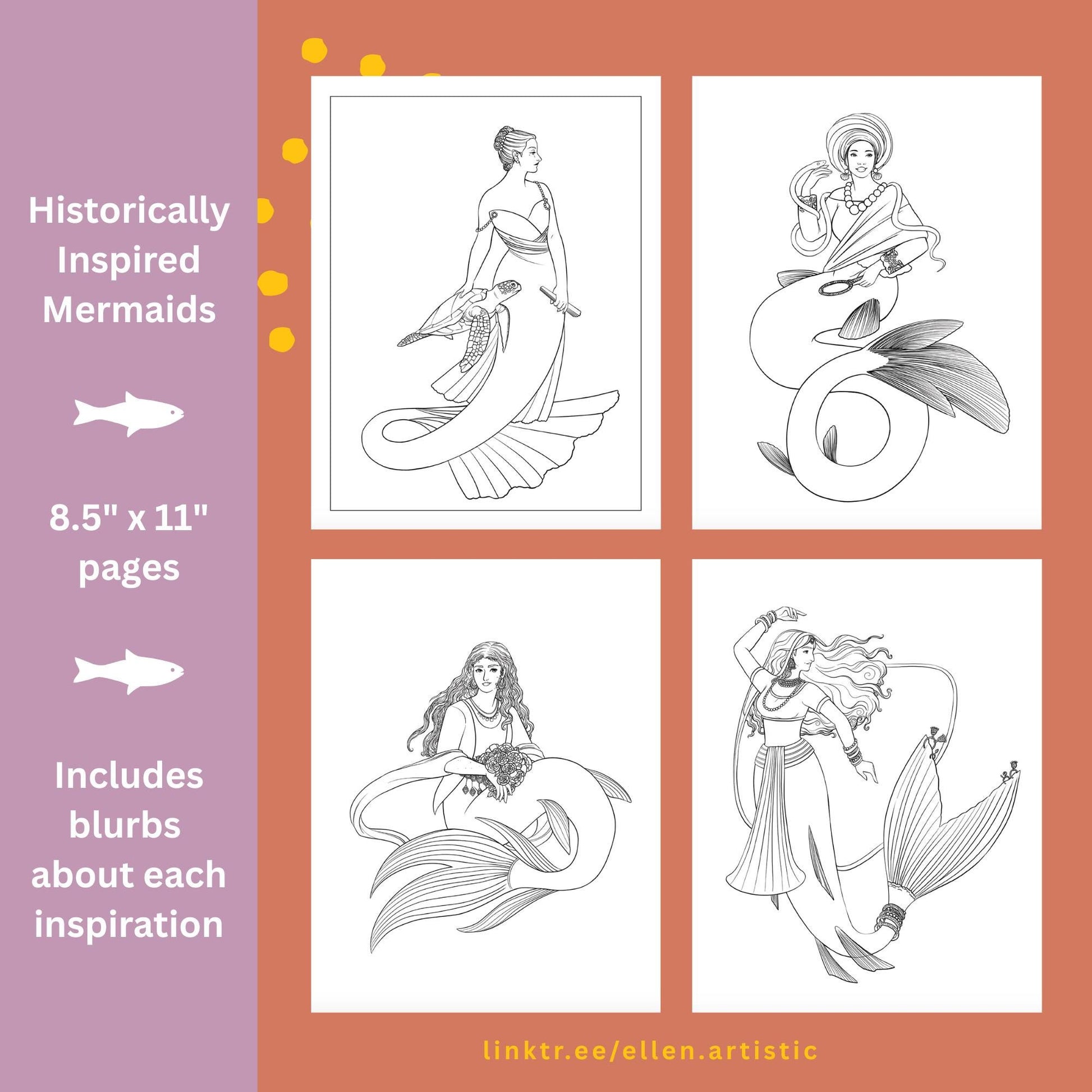 Historical Mermaids Coloring Bundle 2 - 13 Page PDF by Ellen Artistic