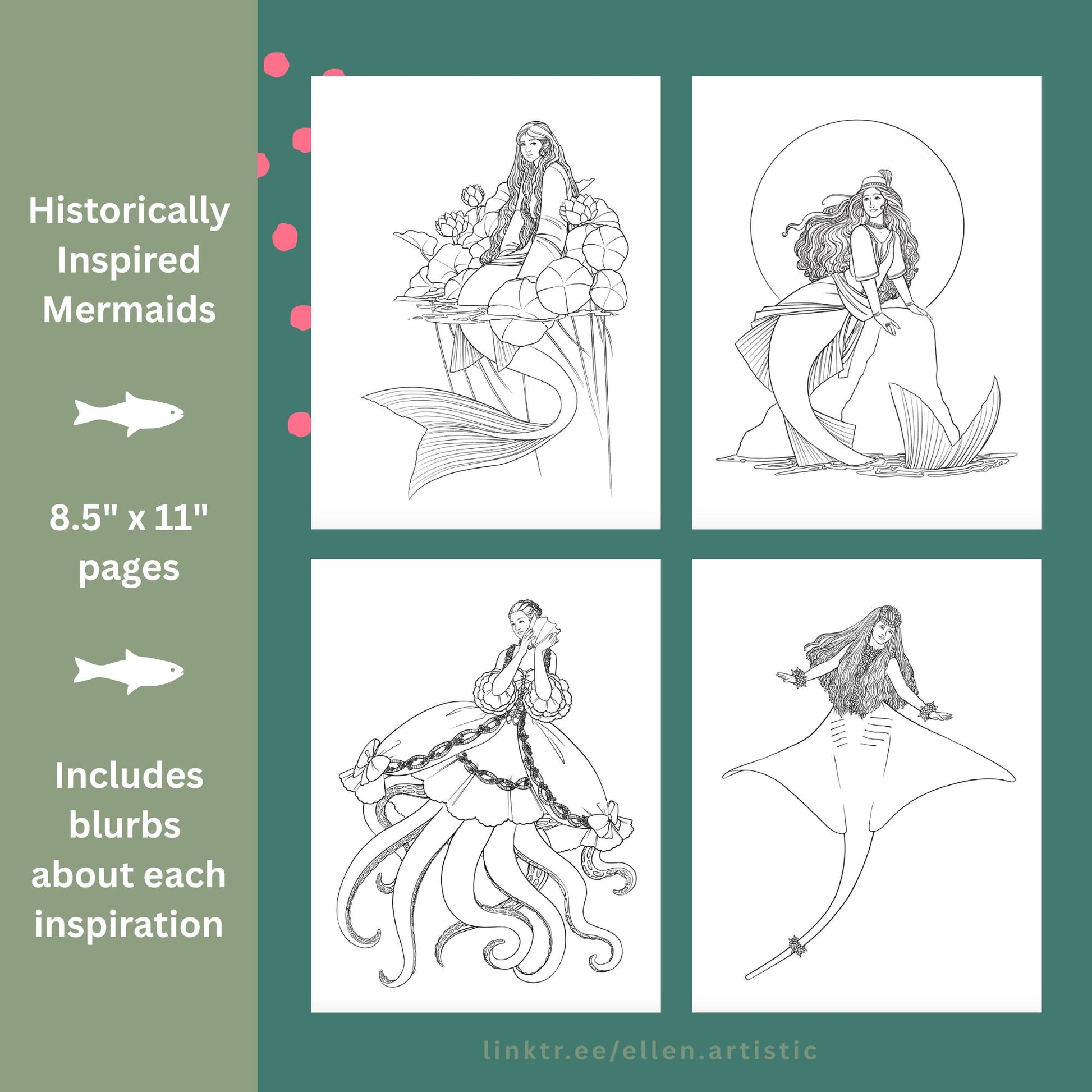 Historical Mermaids Coloring Bundle 3 - 13 Page PDF by Ellen Artistic