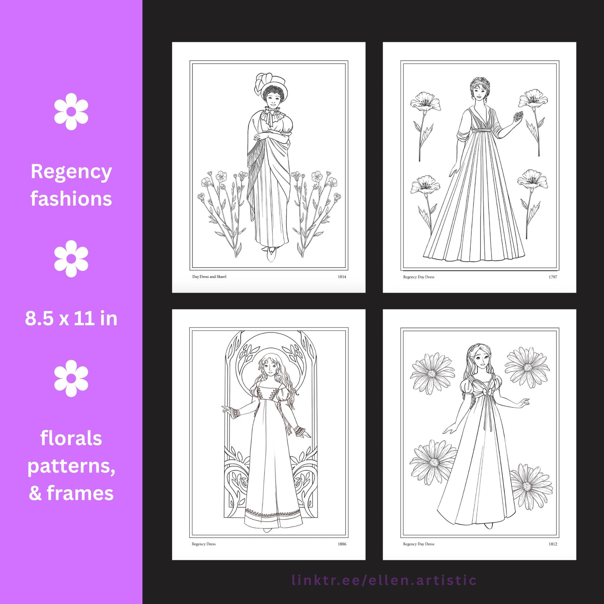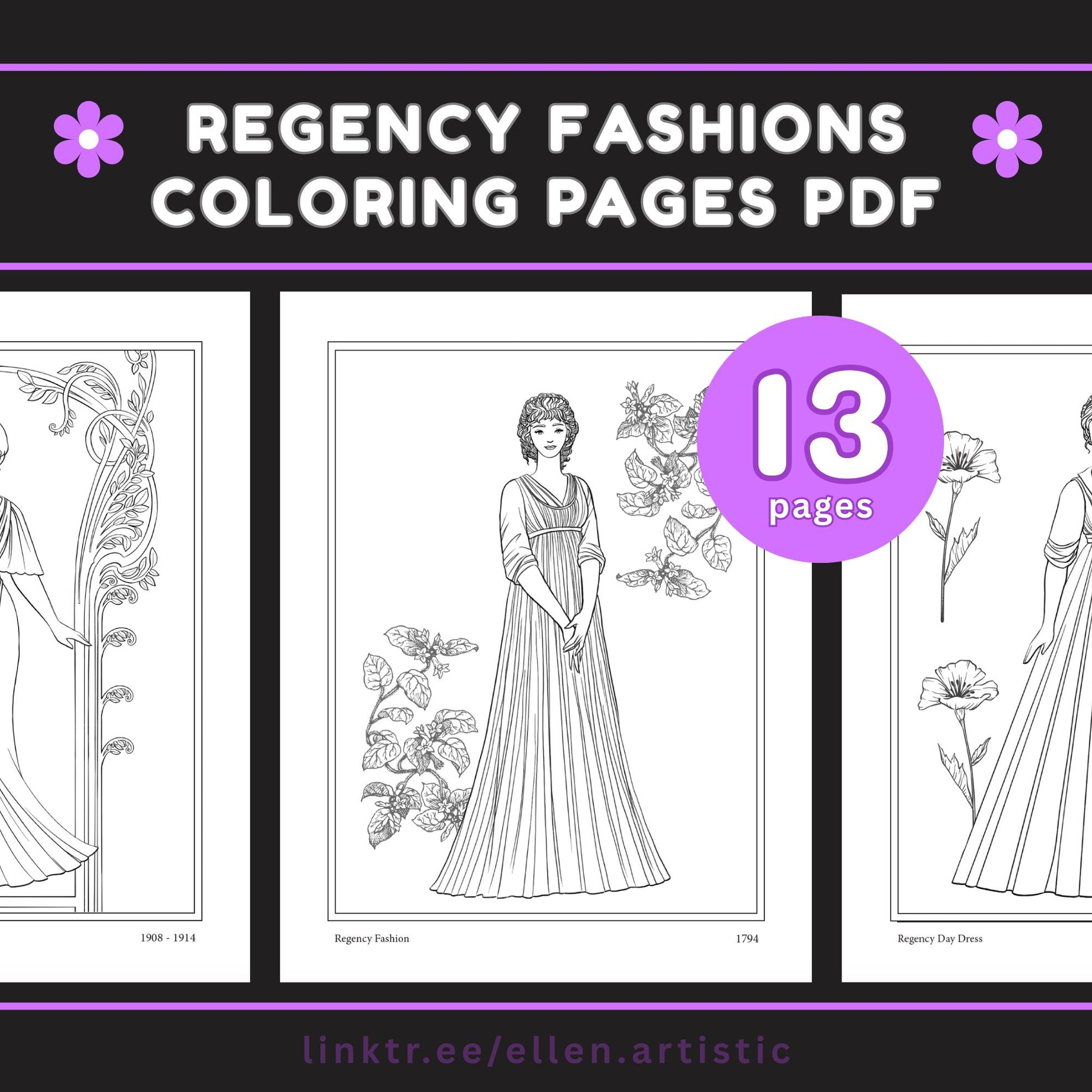 Regency Fashion Coloring Pages - 13 Page PDF by Ellen Artistic