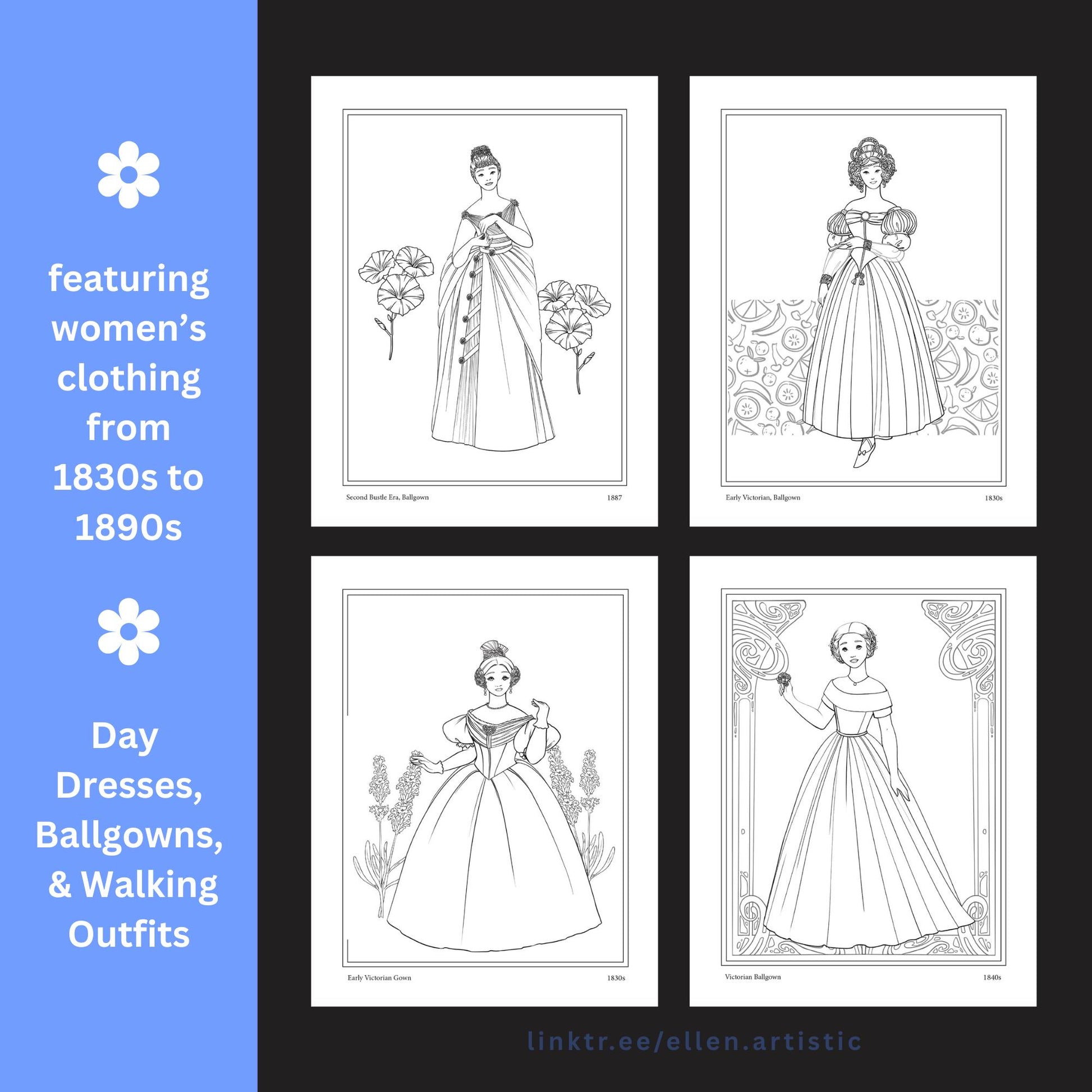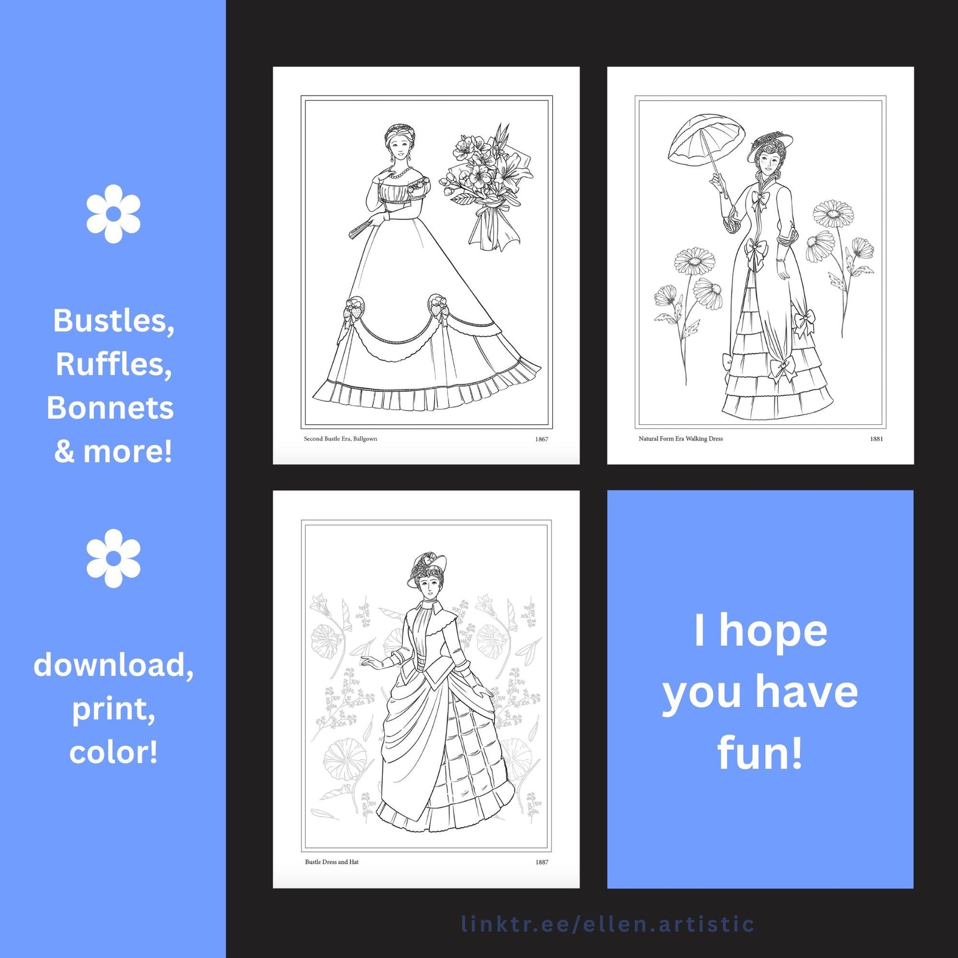 Victorian Fashion Coloring Pages - 15 Page PDF by Ellen Artistic